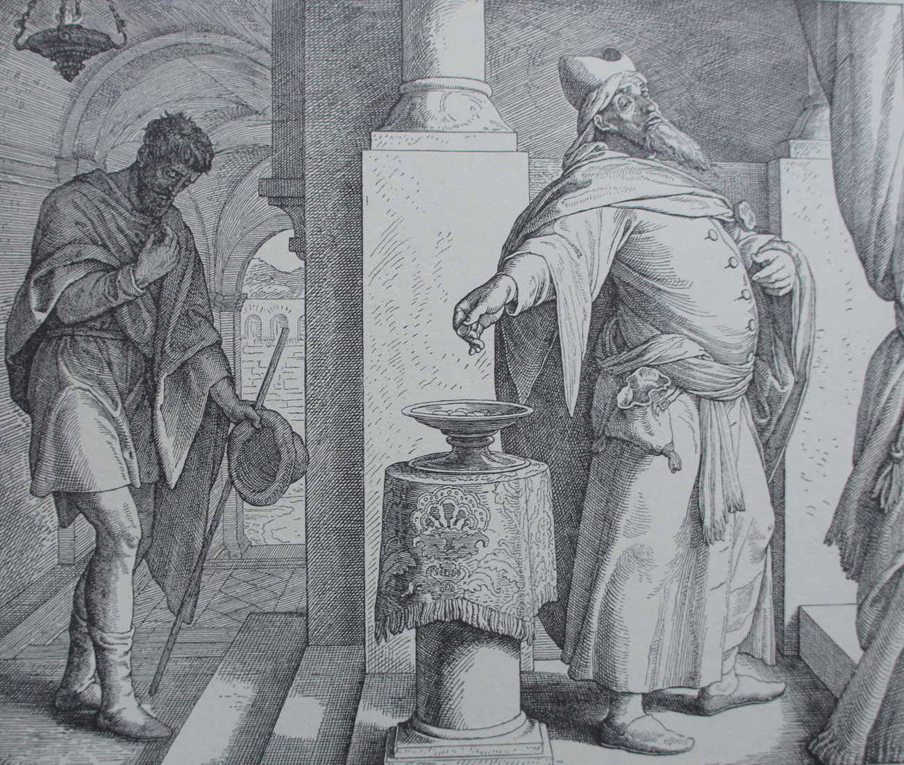 In jener Zeit erzählte Jesus einigen, die von ihrer Gerechtigkeit überzeugt waren und die anderen verachteten, dieses Beispiel: Zwei Männer gingen in den Tempel hinauf, um zu beten; der eine war ein Pharisäer, der andere ein Zöllner. Der Pharisäer stellte sich hin und sprach leise dieses Gebet: Gott, ich danke dir, daß ich nicht wie die anderen Menschen bin, die Räuber, Betrüger, Ehebrecher, oder auch wie dieser Zöllner dort.